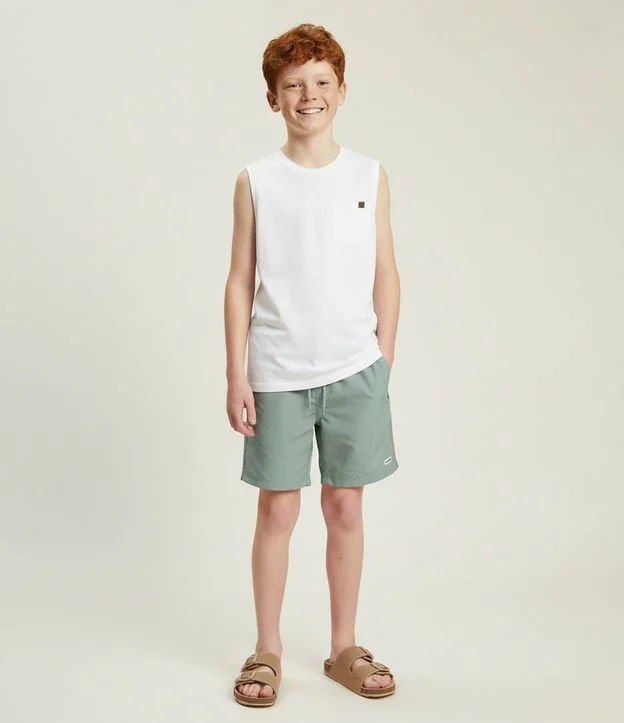 Bermuda de Banho Infantil com Etiqueta Emborrachada - Tam 5 a 14 anos Verde
