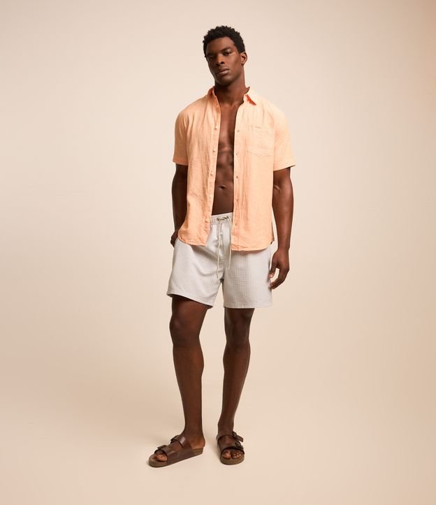 Bermuda de Praia Listrada em Microfibra com Textura Anarruga