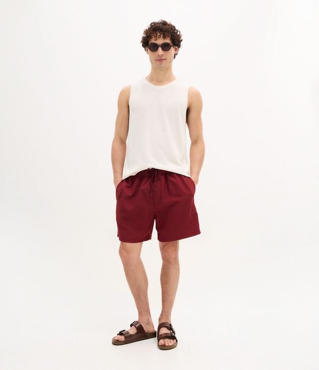 Bermuda de Praia em Anarruga com Textura Vermelho