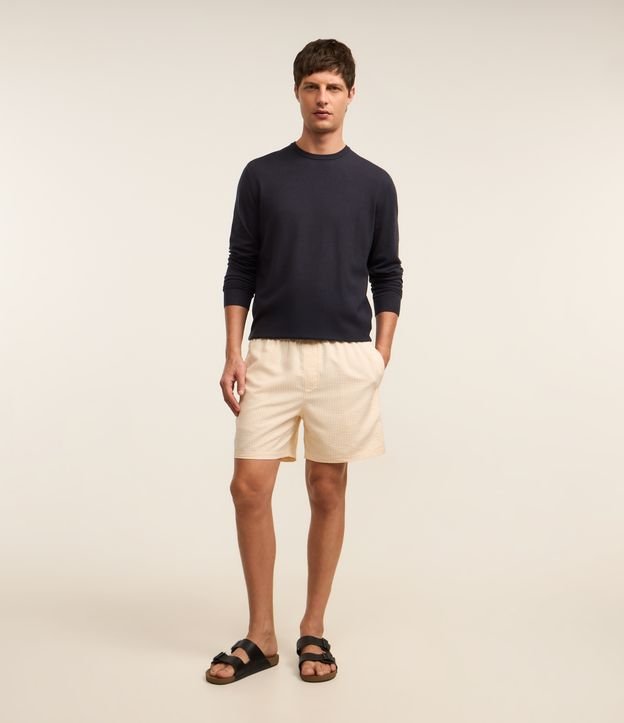 Bermuda de Praia Listrada em Microfibra com Textura Anarruga Amarelo