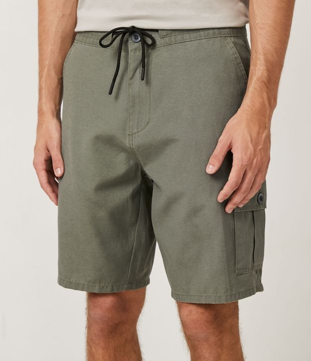 Bermuda em Algodão com Bolsos Cargo e Cós Fixo