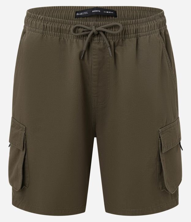 Bermuda em Algodão com Cós Elástico e Bolsos Cargo