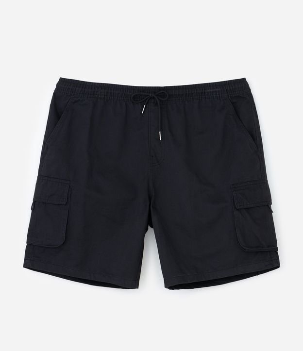 Bermuda em Algodão com Cós Elástico e Bolsos Cargo Preto