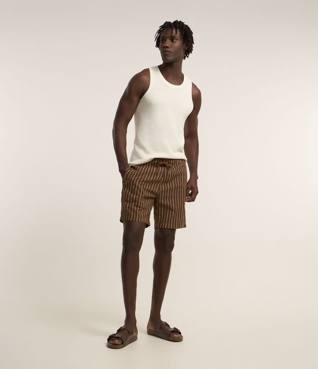 Bermuda em Algodão com Cós Elástico e Estampa Listrada