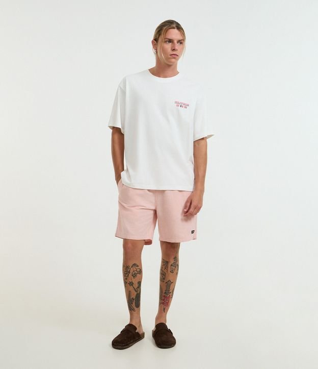Bermuda em Algodão com Cós Elástico e Etiqueta Aplicada Salmão