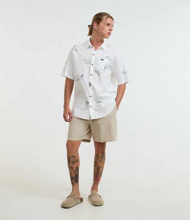 Bermuda em Algodão com Cós Elástico e Textura