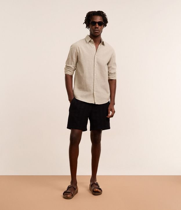 Bermuda em Algodão com Textura e Cós Elástico Preto