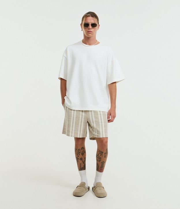 Bermuda em Jacquard Com Estampa Listrada e Texturizada Bege