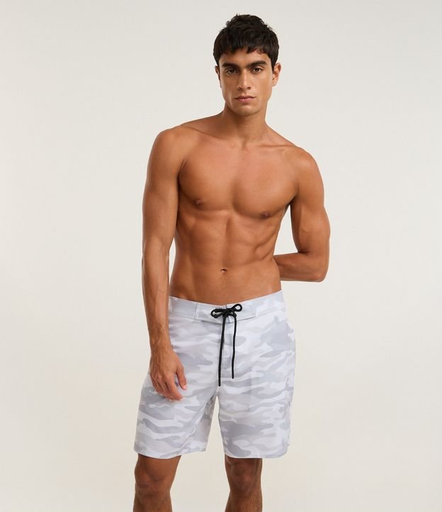 Bermuda em Microfibra com Estampa Camuflada Cinza