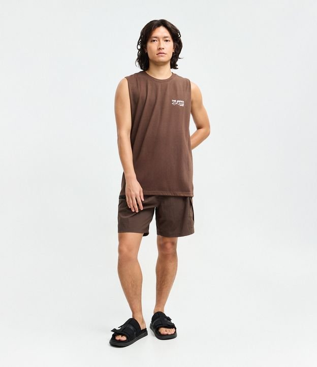 Bermuda em Poliamida com Bolsos Laterais Marrom Escuro