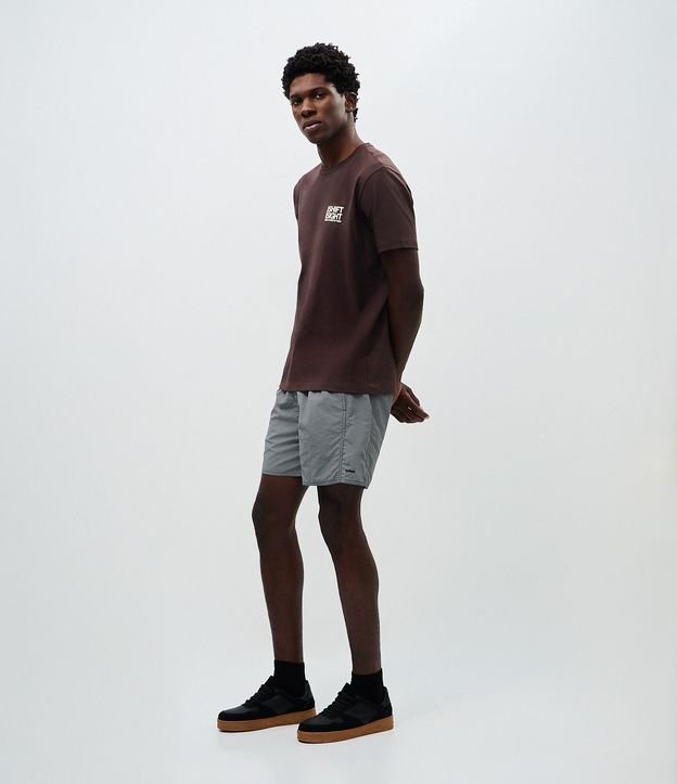 Bermuda em Poliamida de Banho com Bolsos e Bordado Discreto Cinza