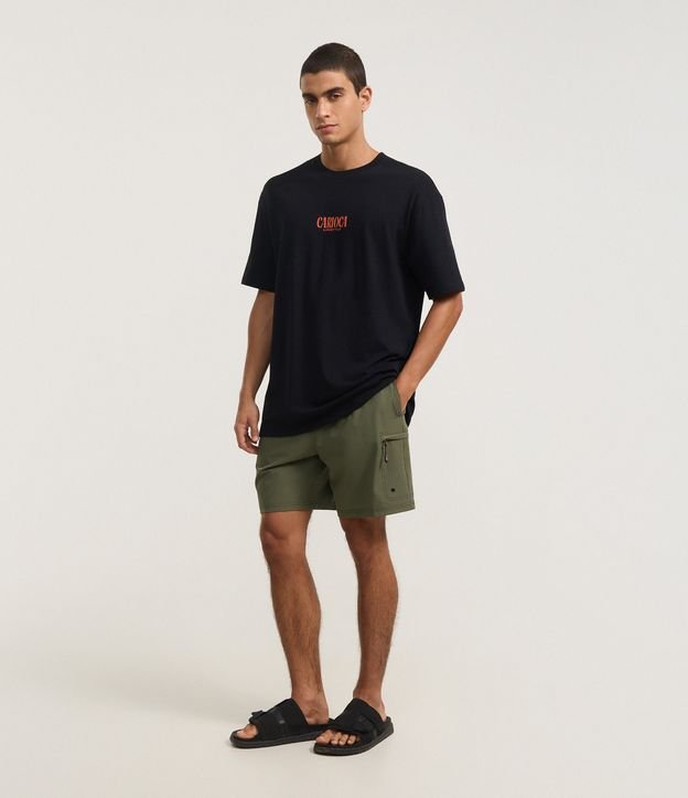 Bermuda masculina confeccionada em ripstop. Possui cós elástico. cordão para ajustes, bolsos e etiqueta aplicada.