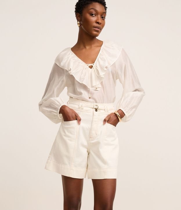 Bermuda em Sarja com Cinto e Recorte Diferenciado