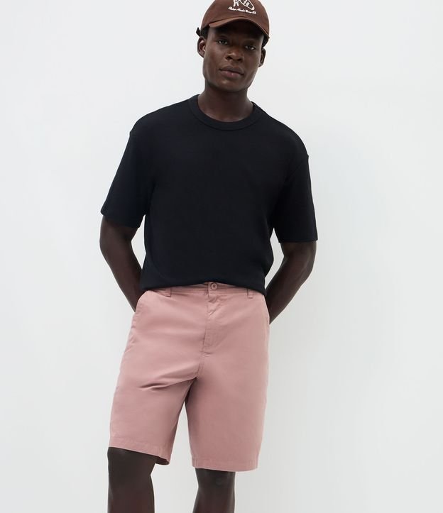 Bermuda em Sarja com Cós Passante e Bolsos Rosa