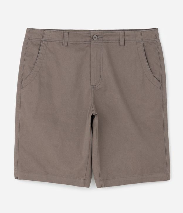 Bermuda em Sarja com Cós Passante e Bolsos Cinza