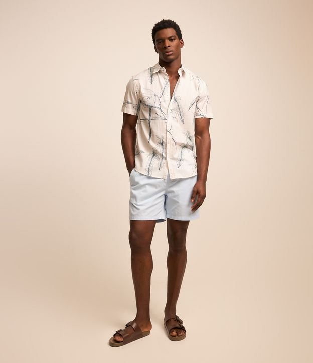 Bermuda regular masculina confeccionada em sarja com baixo consumo de água com elástico no cós e cordão para ajuste. Sem estampa, possui detalhe de bolso embutido na parte traseira com etiqueta.