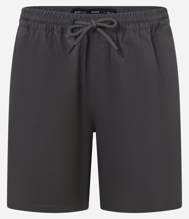 Bermuda Regular em Sarja com Elástico no Cós e Cordão Cinza escuro