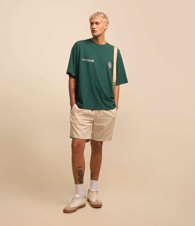 Bermuda Regular em Sarja Texturizada com Cós Elástico e Bolsos Laterais