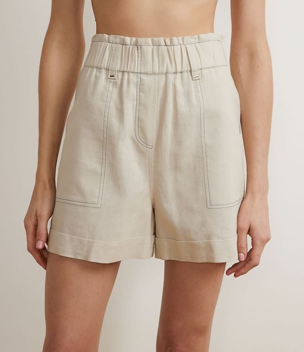 Bermuda em Viscose com Pespontos Contrastantes e Cós Elástico
