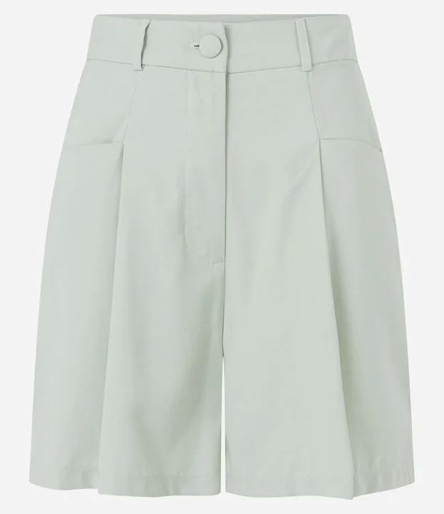 Bermuda em Viscose com Pregas e Bolsos Enviesados