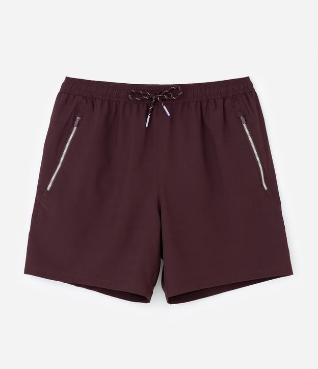Bermuda Esportiva com Blocos de Cor e Bolsos com Zíper Bordô