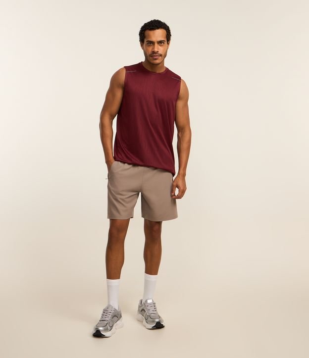 Bermuda Esportiva com Laser Cut e Bolsos com Zíper Marrom Acinzentado