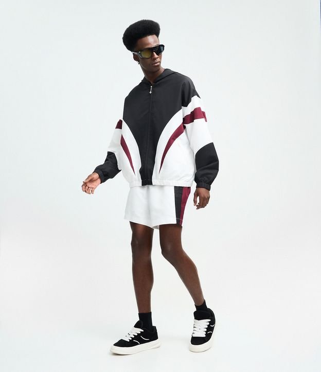 Bermuda Esportiva com Painéis Tricolor Branco