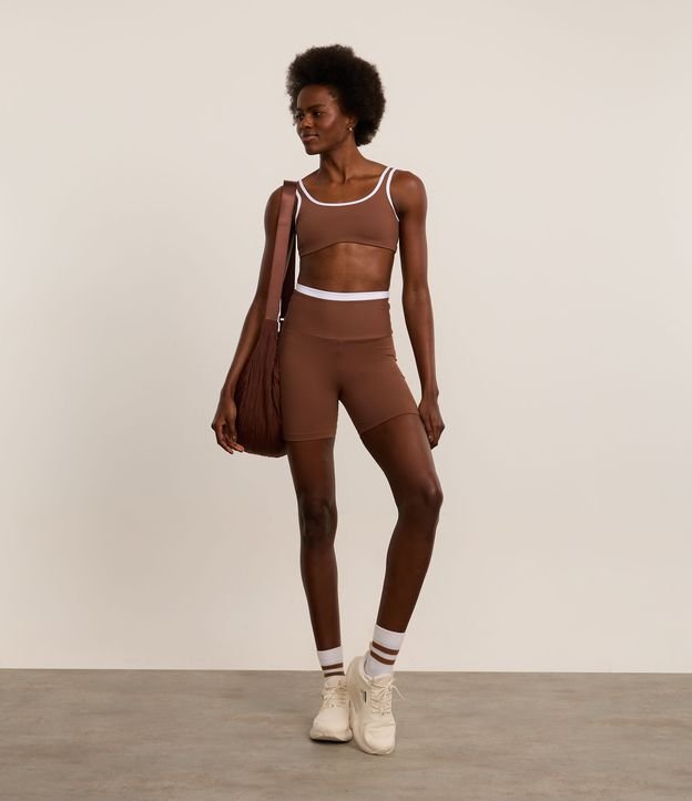 Bermuda Esportiva em Microfibra Canelada com Cós Contrastante Marrom