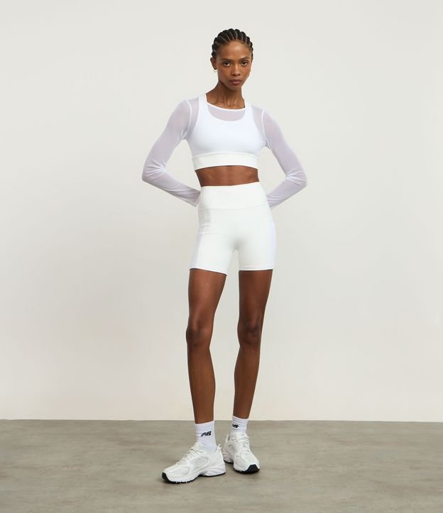 Bermuda Esportiva em Microfibra com Bolso em Tule Branco