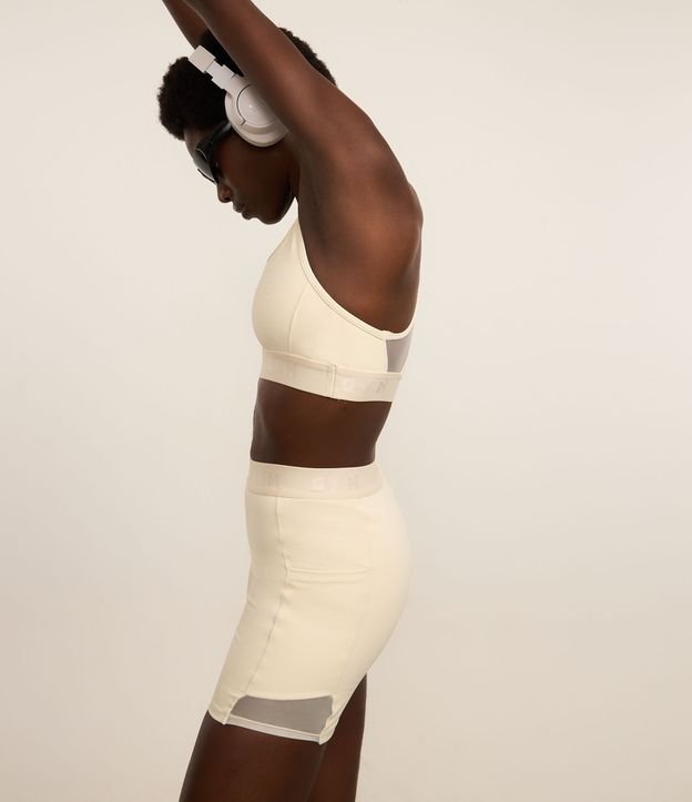 Bermuda Esportiva em Microfibra Pesada com Cós Elástico e Bolsos Bege