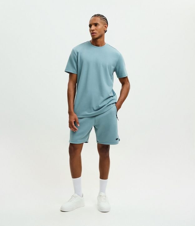 Bermuda Esportiva em Moletom Tecnológico com Cós Elástico e Zíper no Bolso Azul Chumbo