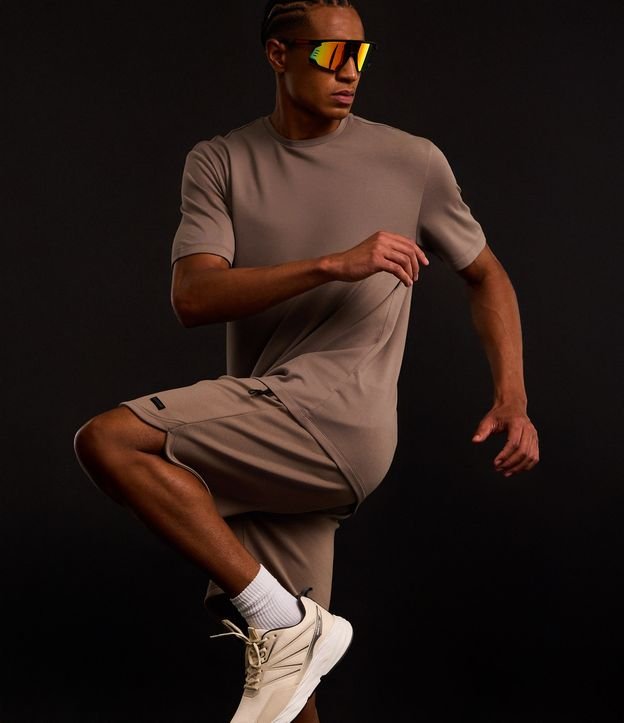 Bermuda Esportiva em Moletom Tecnológico com Cós Elástico e Zíper no Bolso Marrom