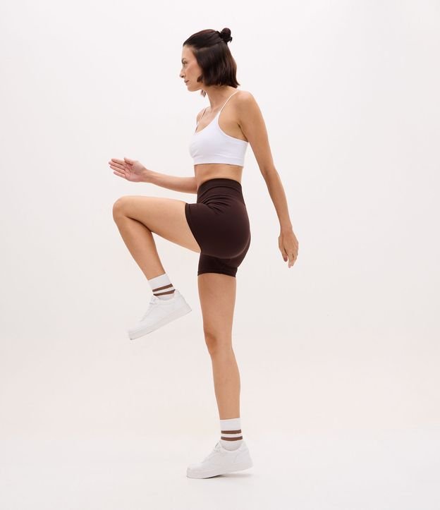 Bermuda Esportiva em Poliamida Seamless com lateral Canelada Marrom