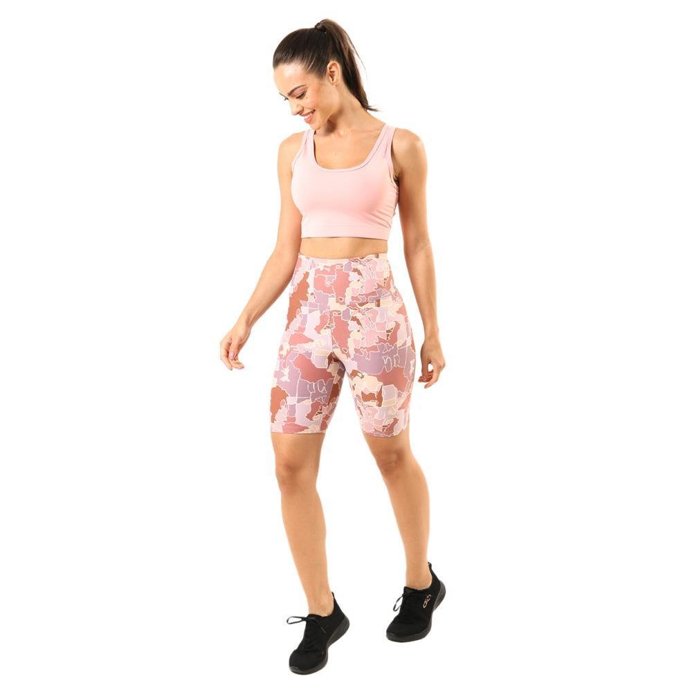 Bermuda Fitness Feminina Estampada Cós Alto Puzzle Líquido