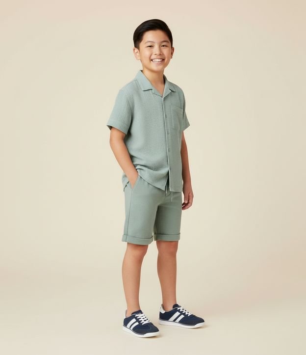 Bermuda Infantil com Barra Dobradinha - Tam 5 a 14 anos Verde