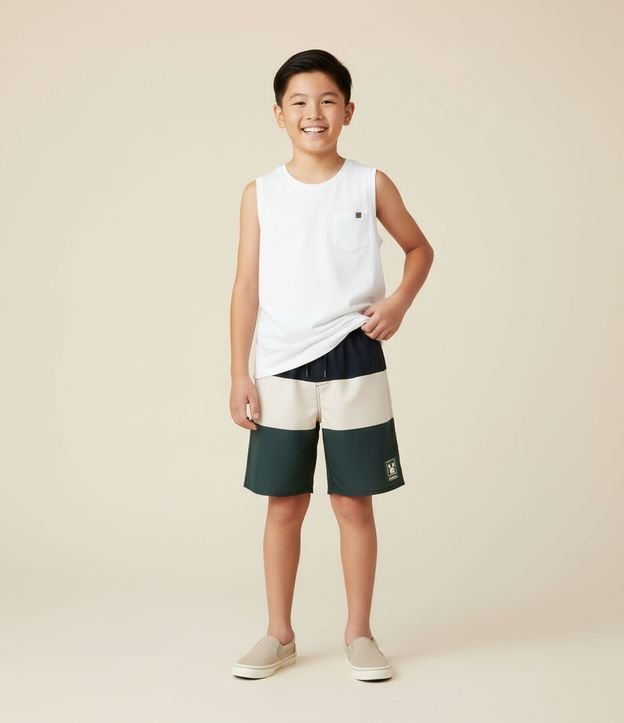 Bermuda Infantil com Blocos de Cor e Patch Minecraft - Tam 5 a 14 anos