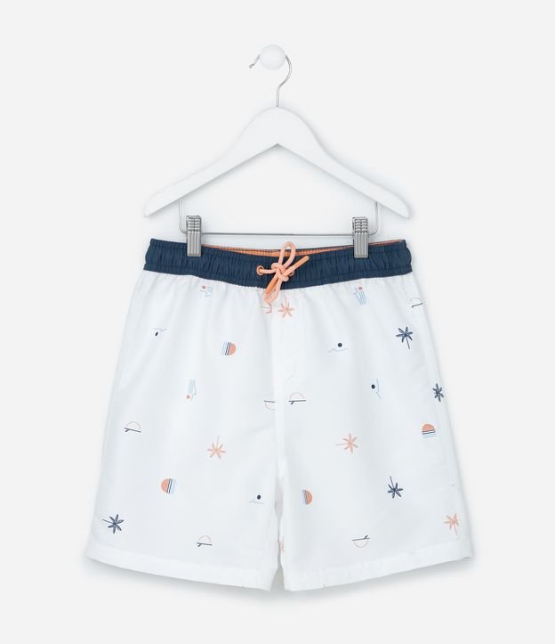 Bermuda Infantil com Estampa de Mini Ícones - Tam 5 a 14 Anos Branco