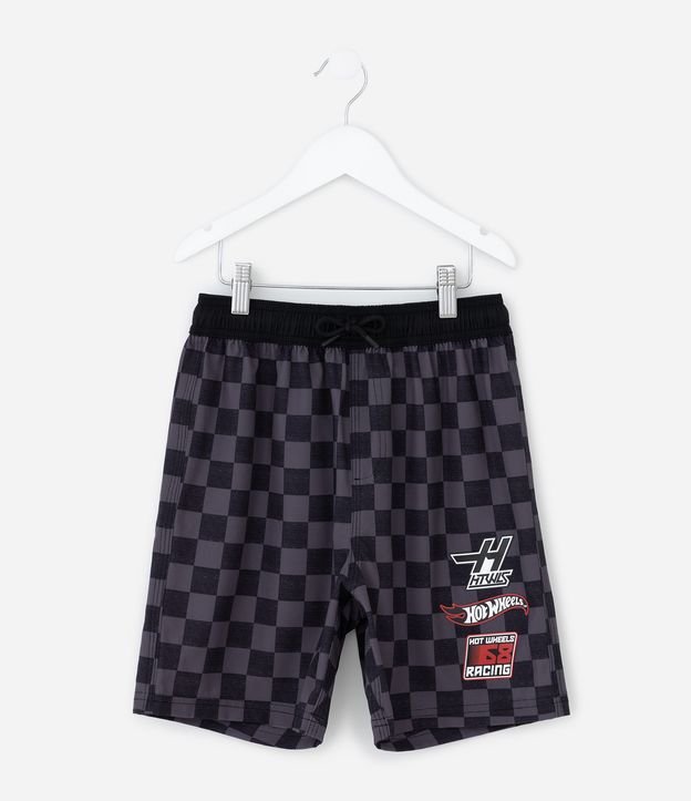 Bermuda Infantil com Estampa Hot Wheels Quadriculada - Tam 4 a 12 Anos Preto