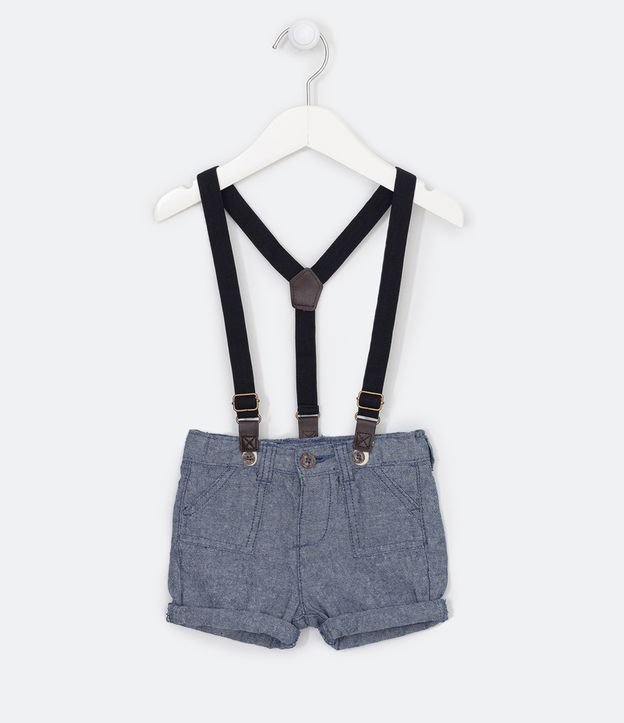 Bermuda Infantil com Suspensório Linho - Tam 0 a 18 meses