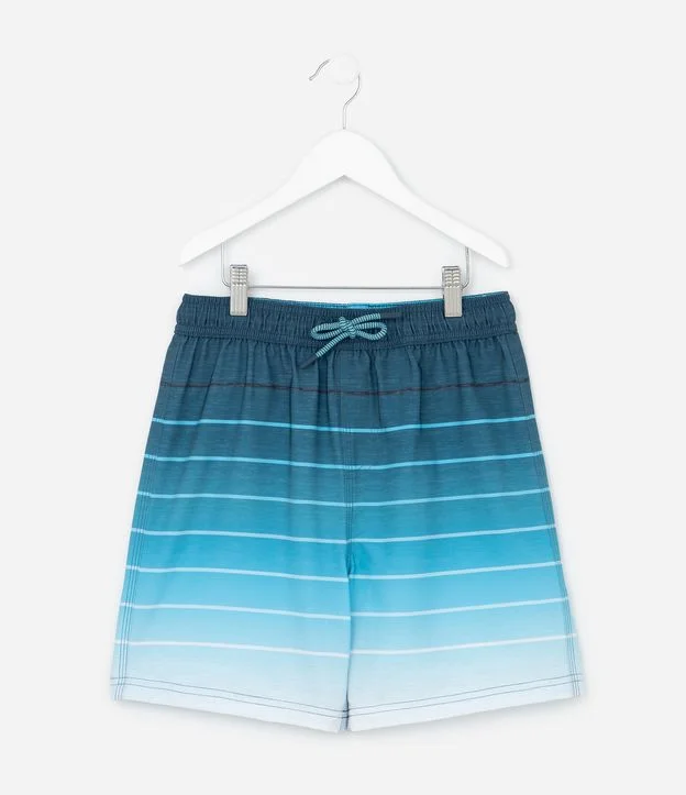 Bermuda Infantil de Banho com Estampa de Listras Degradê - Tam 5 a 14 Anos Azul