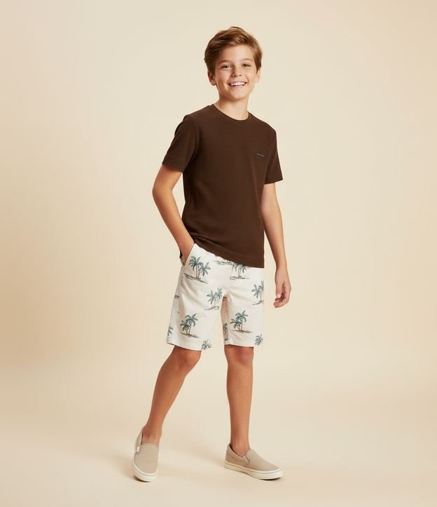 Bermuda Infantil de Banho com Estampa de Palmeiras Mini Ícones - Tam 5 a 14 Anos Bege