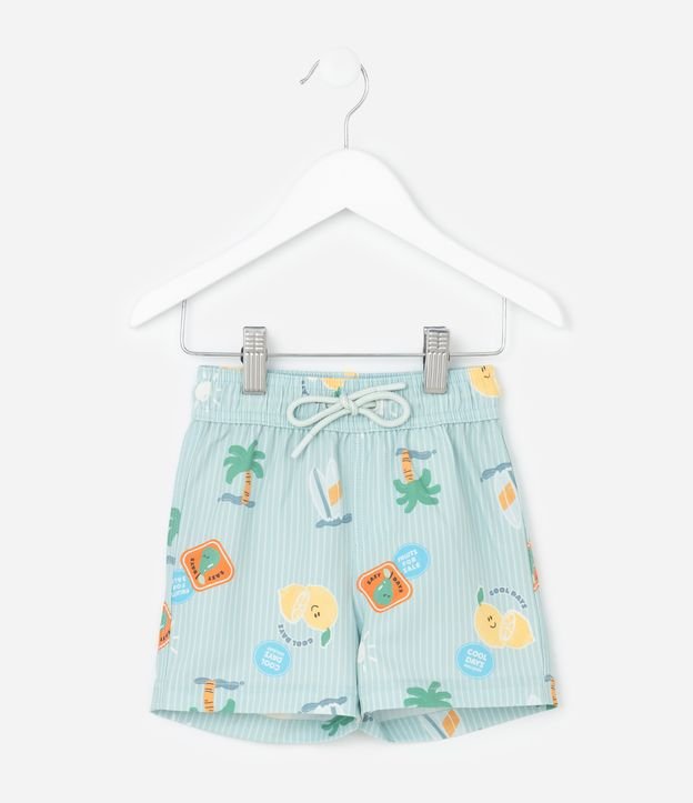 Bermuda Infantil de Banho com Estampa Listrada de Praia e Limões - Tam 1 a 6 Anos Verde