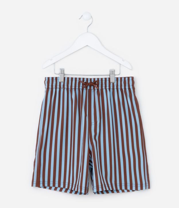 Bermuda Infantil de Banho em Rip Stop Listrada - Tam 5 a 14 Anos Marrom/Azul