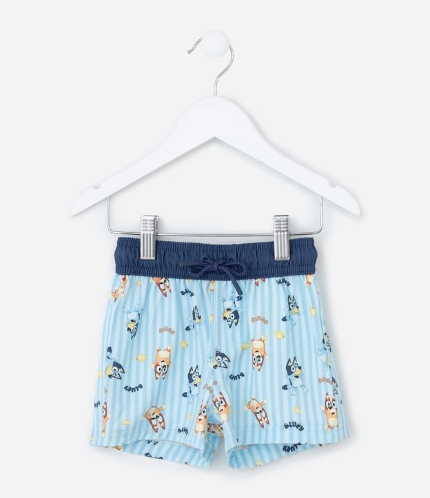 Bermuda Infantil de Banho Listrada com Estampa Bluey - Tam 1 a 6 Anos Azul