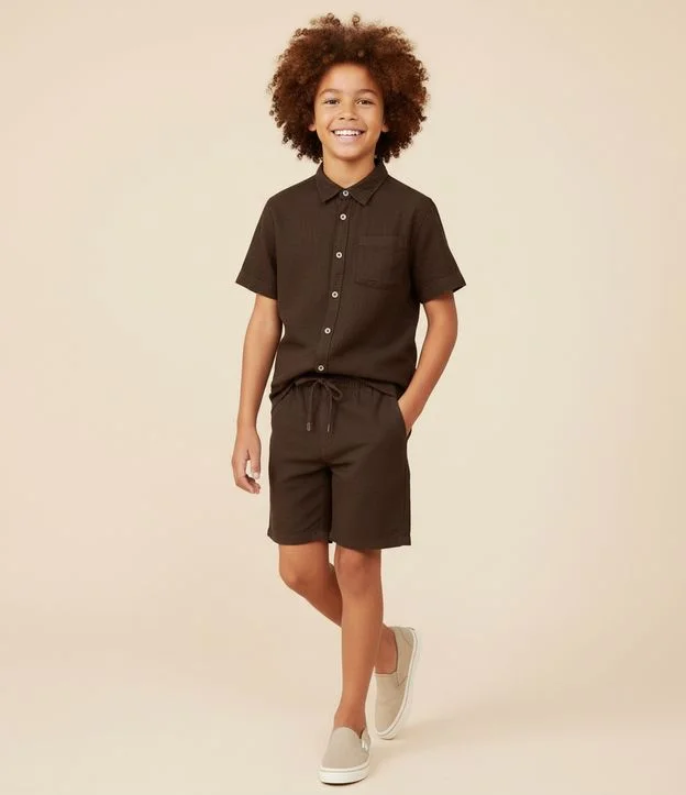 Bermuda Infantil em Algodão e Linho com Cós Elástico - Tam 5 a 14 anos Marrom