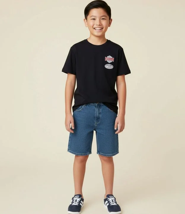 Bermuda Infantil em Jeans com Bolsos - Tam 5 a 14 Anos