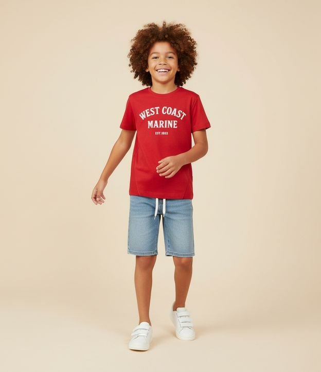 Bermuda Infantil em Jeans com Cós Elástico e Cordão – Tam 5 a 14 Anos