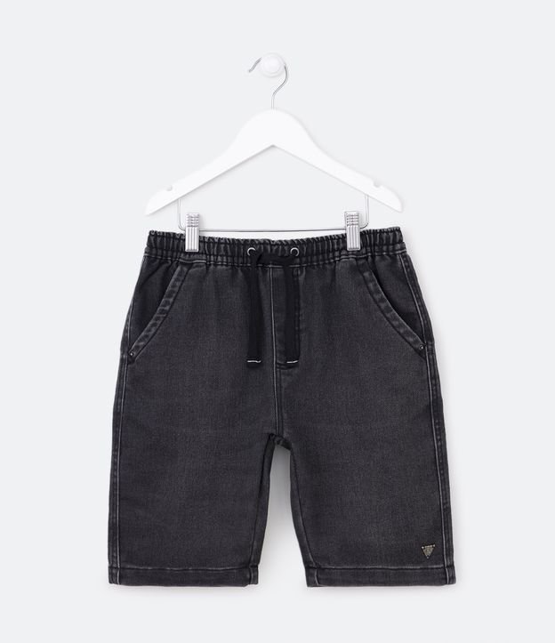 Bermuda Infantil em Jeans Estonado com Detalhe em Plaquinha de Metal - Tam 5 a 14 Anos