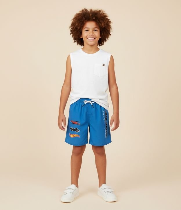 Bermuda Infantil em Microfibra com Estampa Hot Wheels - Tam 4 a 10 Anos Azul