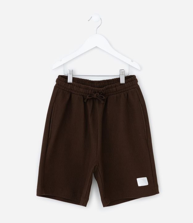 Bermuda Infantil em Moletom Liso com Etiqueta - Tam 5 a 14 Anos Marrom Escuro